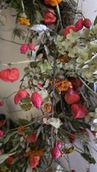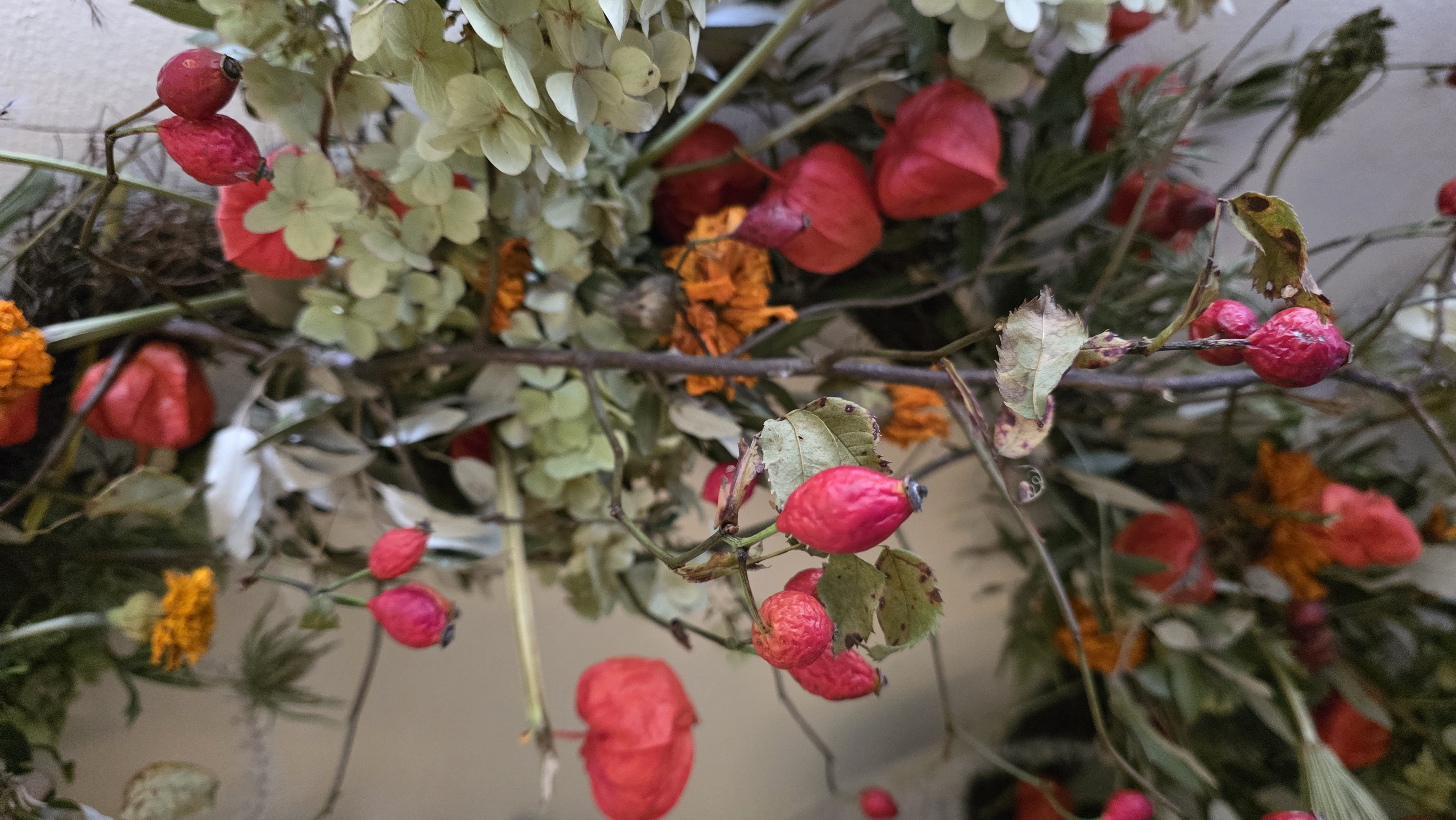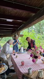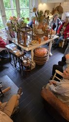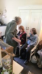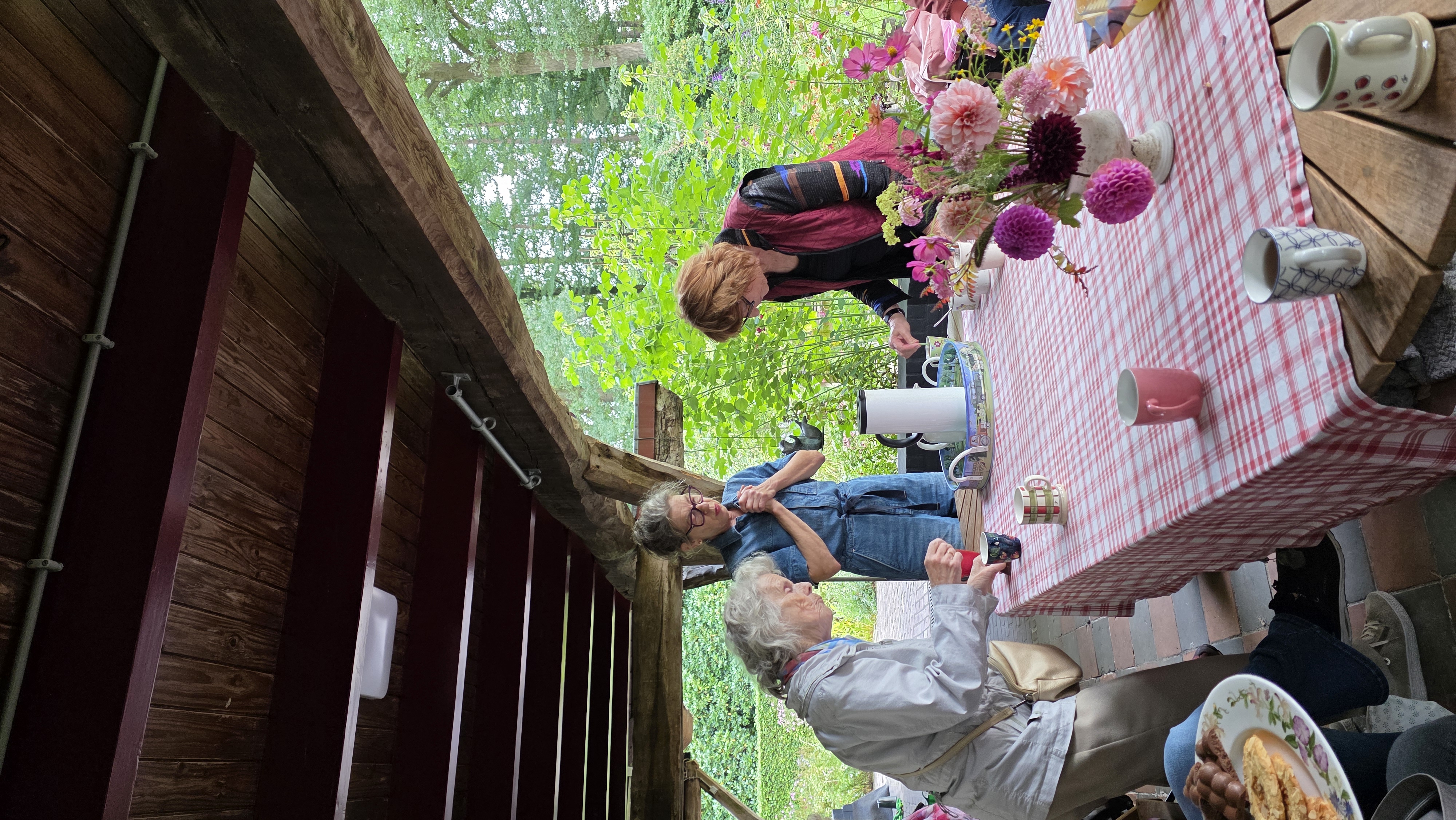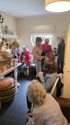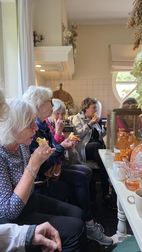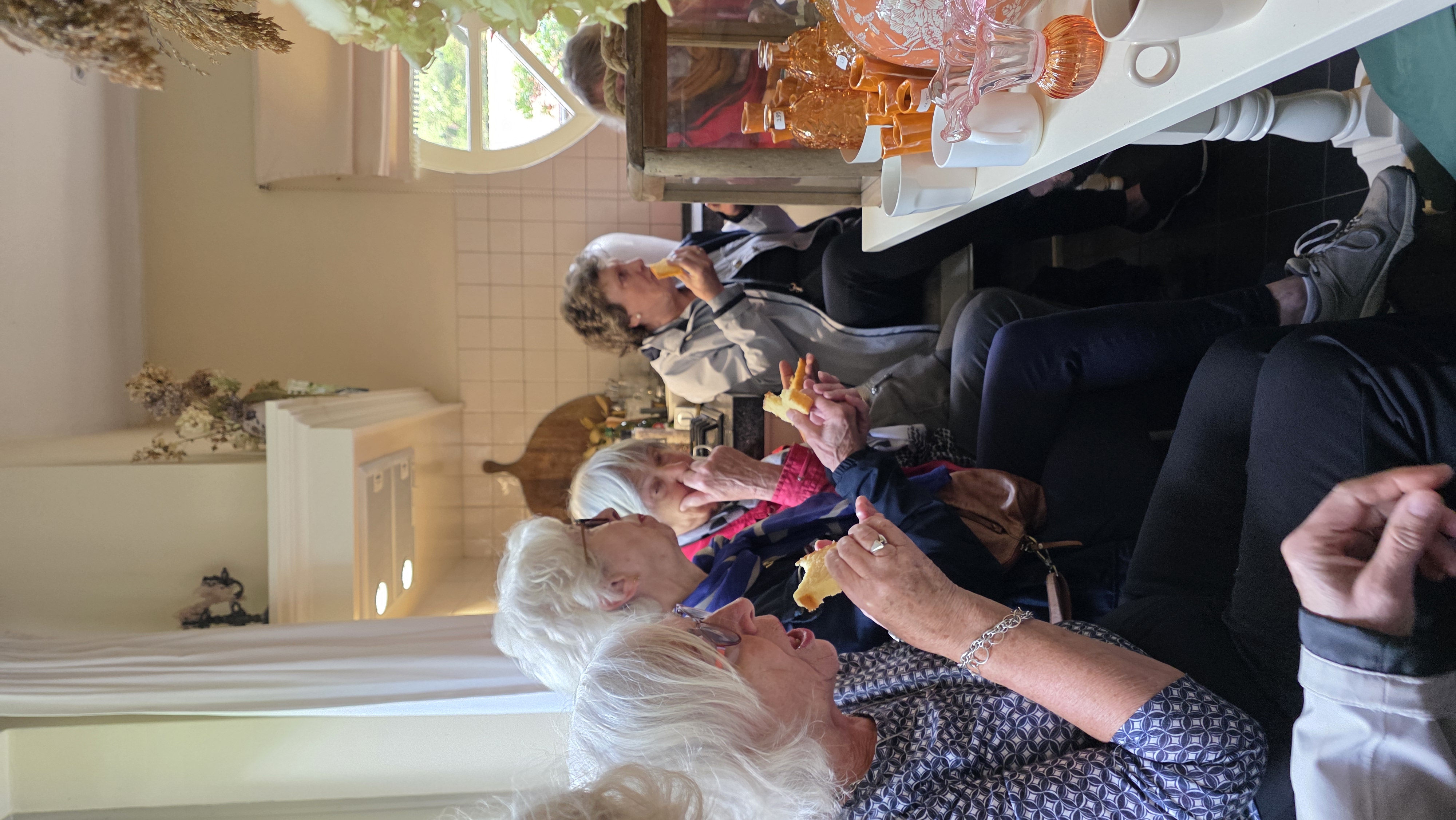 Via de route door Marieke haar bloemschik- en verkoop ruimte naar de gezellige keuken, waar de houtkachel brandde. Daar konden we rondom precies zitten met zijn allen en even lekker genieten van de koffie of thee met cake. Marieke vertelde hier het verhaal van het onstaan van de woning, het landgoed en ook het onstaan van de tuin. Ook vertelde ze hoe je mooi gebruik kan maken van alle materialen die de tuin het hele jaar door geeft om jaar rond mooie stukken in huis te hebben. Ze heeft er prachtige boeken over geschreven.
