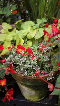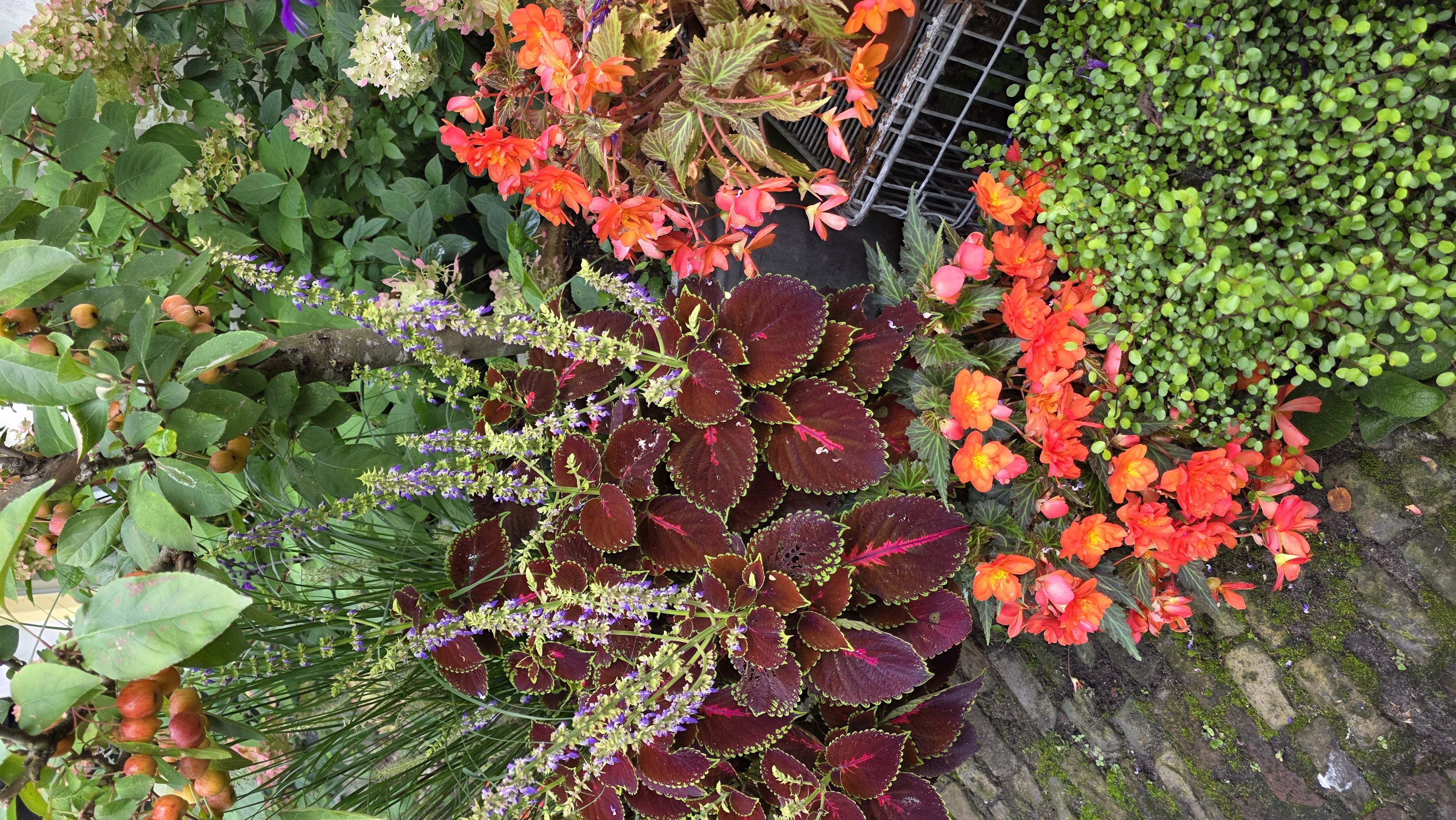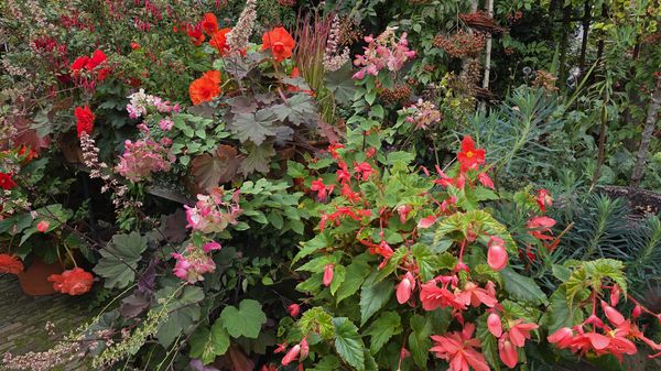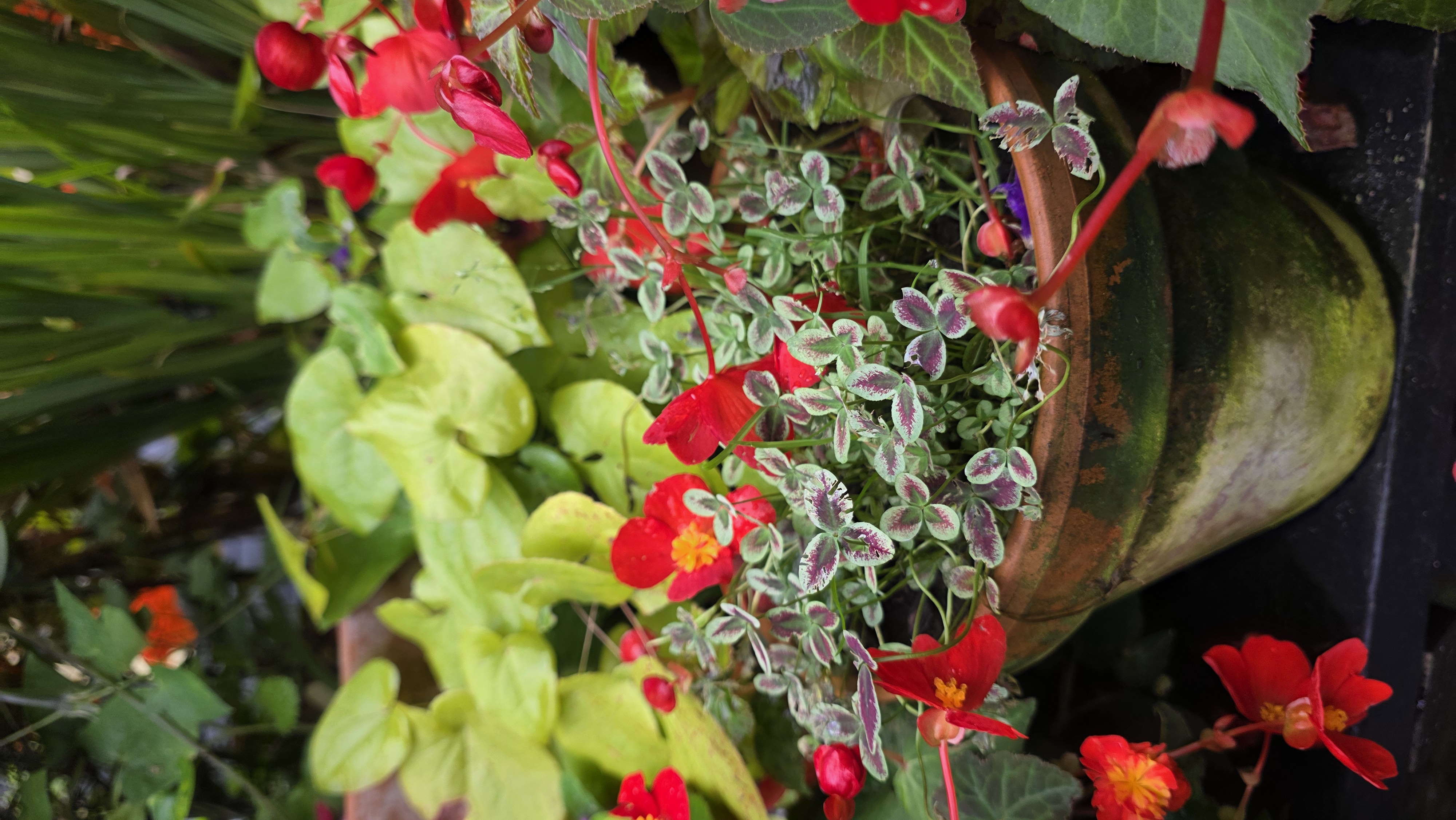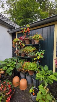 De tuin beschikt over meerdere borders die rijkelijk gevuld zijn met vaste planten en heesters. Marieke houdt van weelderige, transparante borders met een hele natuurlijke uitstraling. Zij is bloembindster en vindt het heerlijk om met bloemen uit de tuin te werken, dus de beplanting bestaat voor het grote gedeelte uit bruikbare bloemen, bessen en groen voor het schikken van hele natuurlijke arrangementen met een eigentijdse tuinlook. Zo staan er een heleboel malusappelboompjes, allerlei rozebottelsoorten, veel klimopbessen en hortensia’s in.