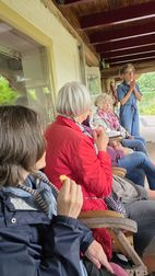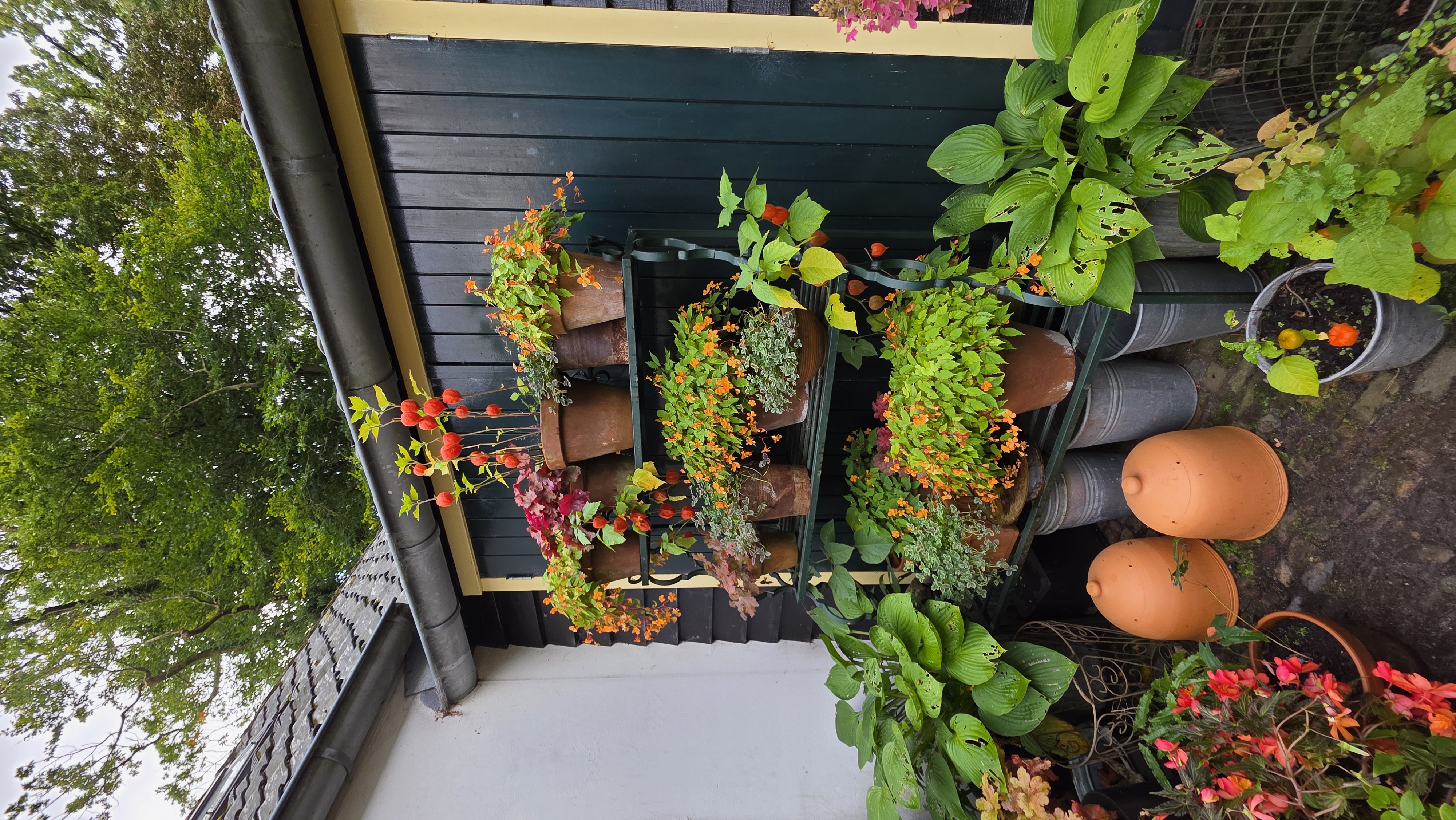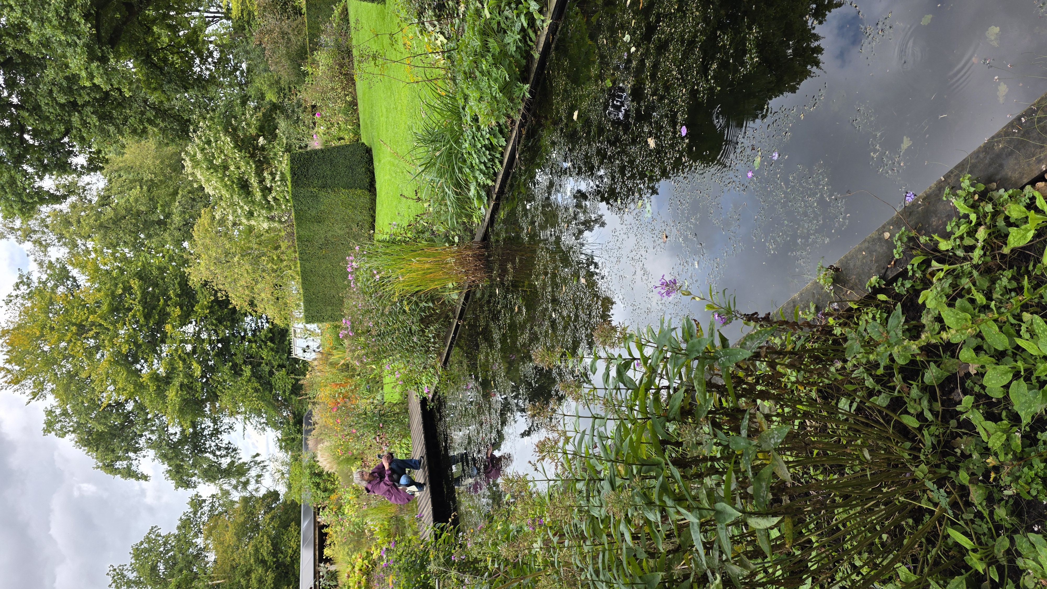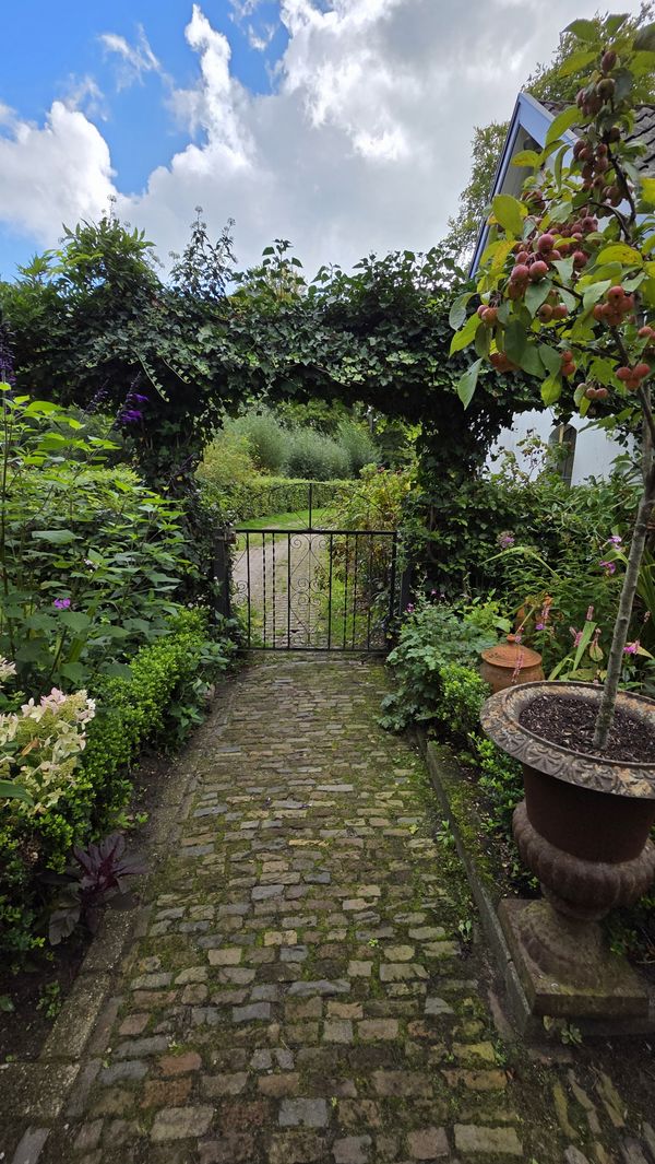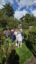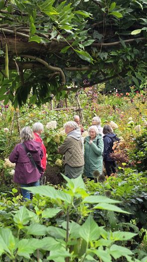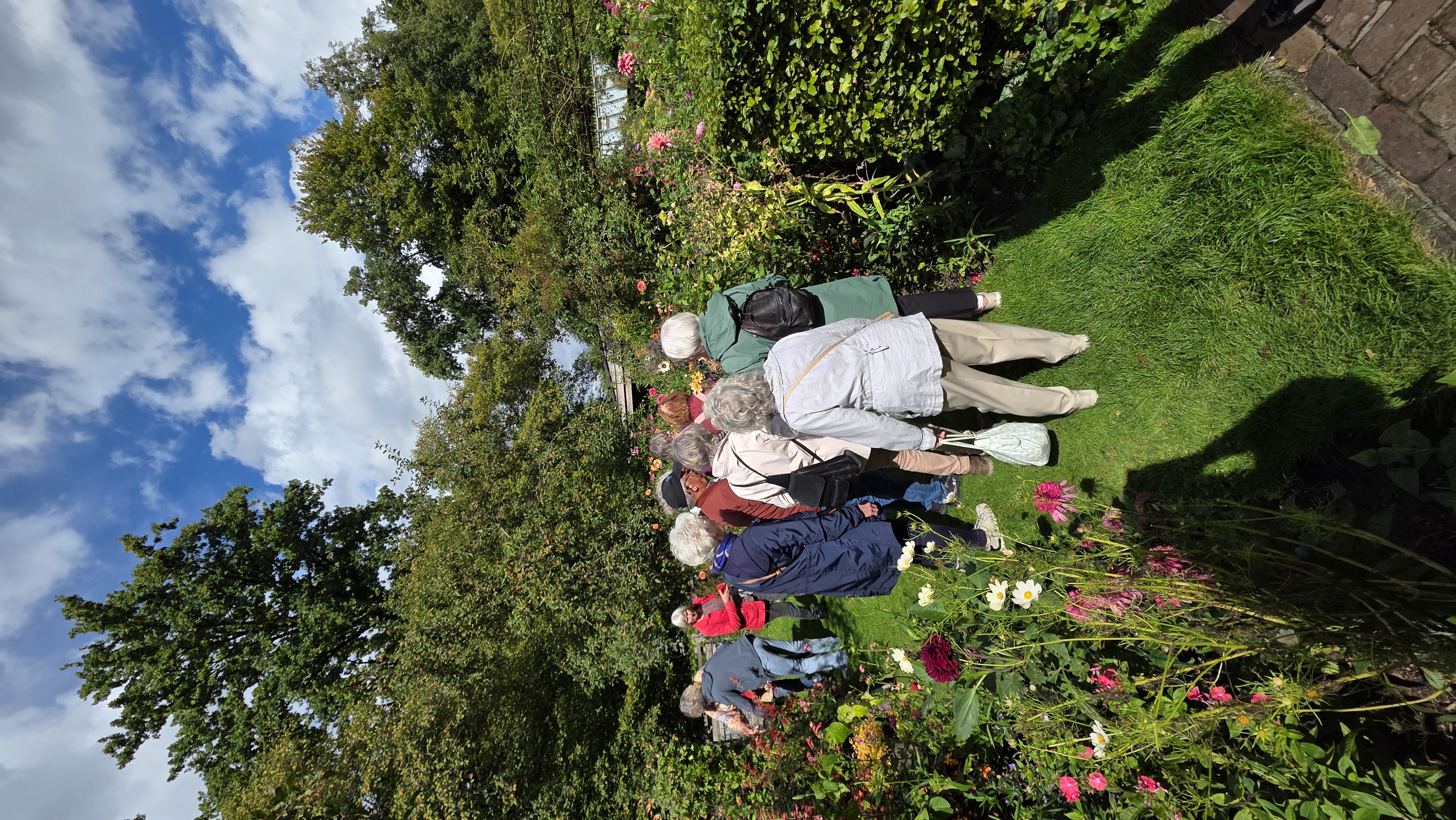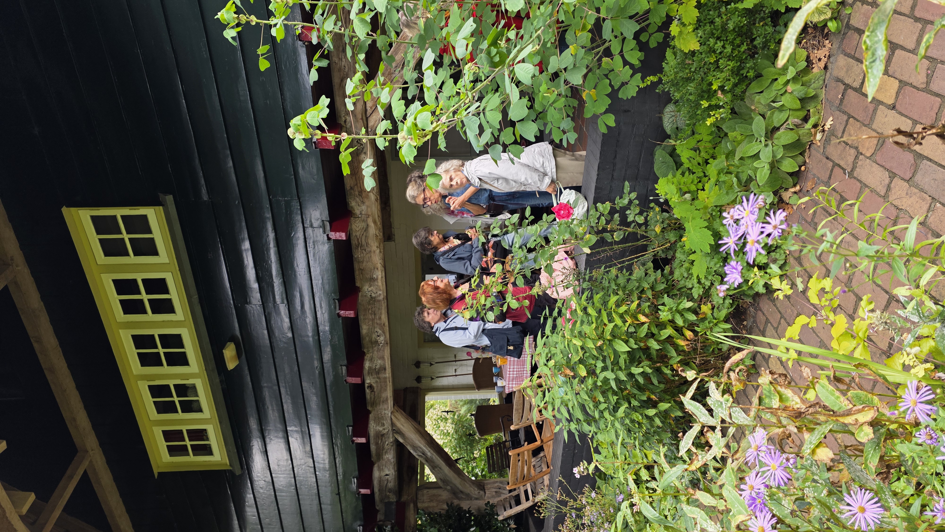 Na het verhaal over de geschiedenis van het gebouw en het onstaan van de tuin werden we rondgeleid. De tuin is een afwisseling van de strakkere smaak van de man van Anja en het weelderige van Anja. Deze combinatie is zeer goed gelukt.