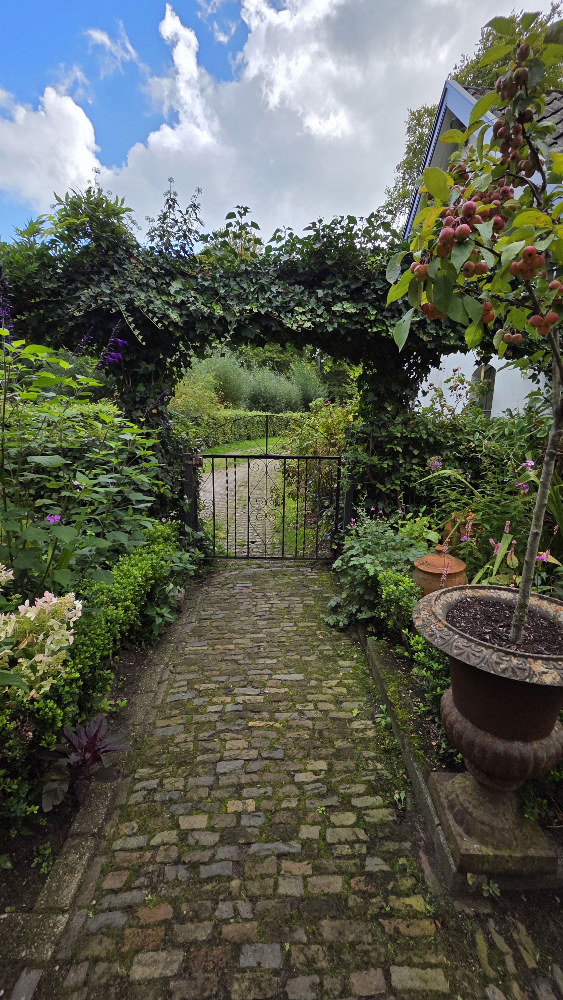 Om 10.30 uur zorgen we dat we bij Marieke Nolsen voor “de tuinpoort” staan om haar tuin te bezichtigen. Marieke heeft boeken geschreven, o.a. met Modeste Herwig en er staan regelmatig artikelen in de bekende groene tijdschriften. Ook verzorgt ze bloemschik workshops en -cursussen.