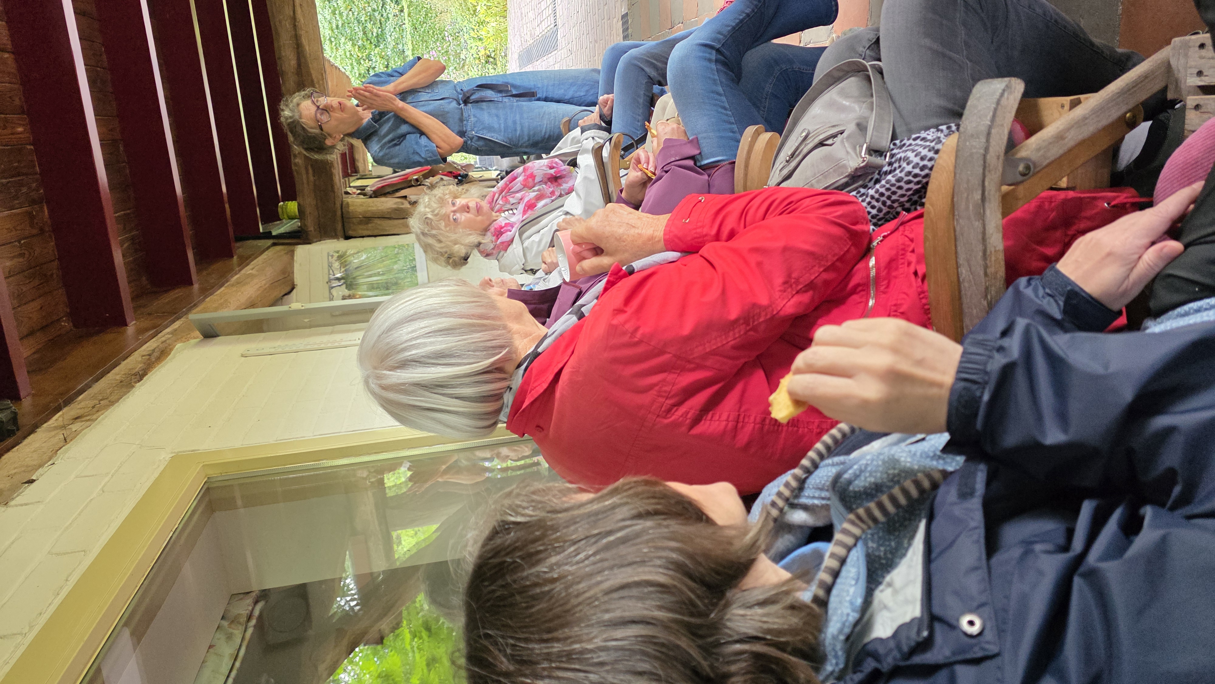 Daar stonden we om half 10 op de verzamelplaats. Allemaal voorbereid op wat slechter weer. Gewapend met regenjas, parapluu en lunchpakket, vertrokken we met 4 auto's naar Leusden.